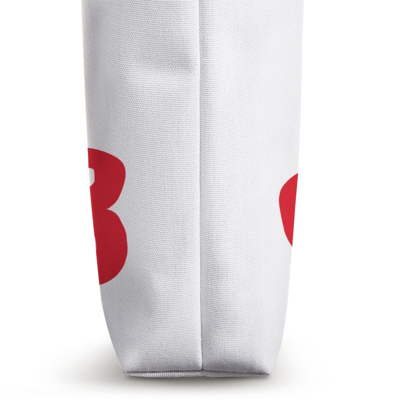 • 16” x 16” bag with two 14” long and 1” wide black cotton webbing strap handles.