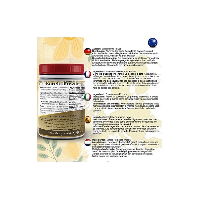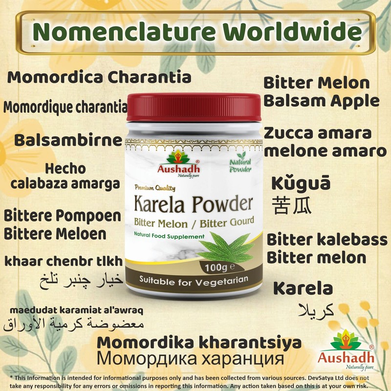 - Made from carefully selected whole Bitter Gourd (Karela) which are processed to pure powder under stringent quality checks.