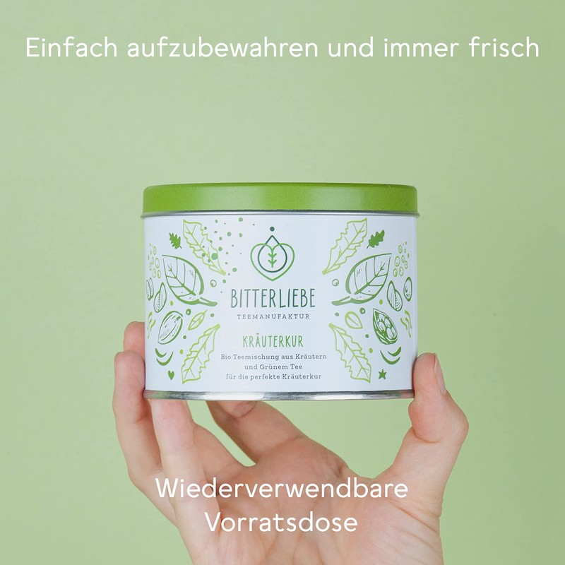 - TEE DOSE: Erlesener Kräutertee lose mit Bitterkräutern – als loser Tee in einer nachhaltigen Vorratsdose oder im praktischen Nachfüllbeutel.