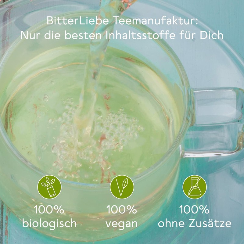 - MADE IN GERMANY: Unser veganer Kräutertee ist 100% natürlich, ohne Zusätze & ohne künstliche Aromastoffe. Mit Hilfe unseres BitterLiebe Tee's kannst Du Dich ganz einfach und lecker wieder an Bitterstoffe gewöhnen. Entdecke weitere besondere Teesorten in unserer BitterLiebe Teemanufaktur.