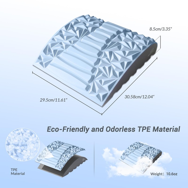 - 【Sustainable Comfort with Dual-Layer Support】 -- Our neck back stretcher combines the softness and skin-friendly properties of high-resilience EVA on the outer layer with the eco-friendly and odorless TPE material on the inner layer. This innovative combination ensures flexibility and comfort, while maintaining exceptional durability. Capable of supporting up to 300 lbs, our Back Cracker stands firm against deformation or splitting, providing you with superior comfort and pressure relief.