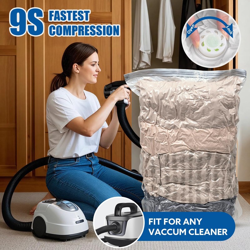 - 【No Vacuum Needed – Simply Press to Compress】Say goodbye to bulky vacuum pumps! Our innovative air valve lets you compress the bags with just a press—no extra tools required. Simply fill, seal, press, and watch your items shrink instantly.
