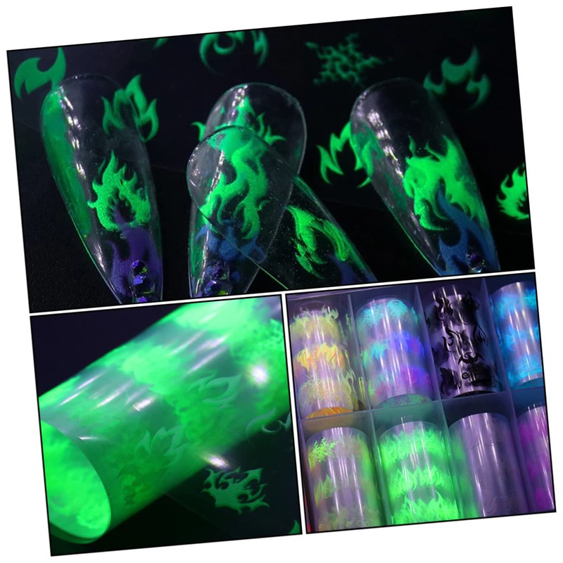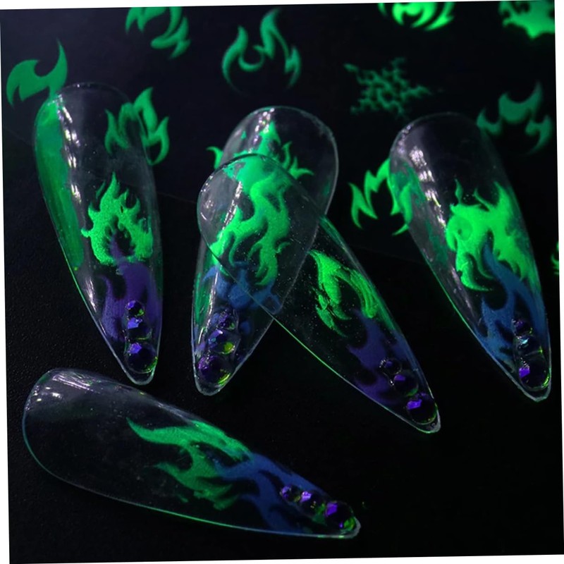 BIUDECO Flame Nail Decals DIY Manicure Stickers for Unique Nail Art Designs Easy to Apply Fluorescent Patterns