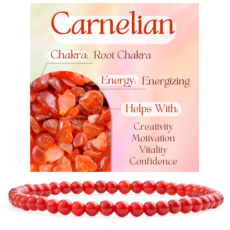 - Spark your passion: Carnelian bracelet symbolizes vitality and enthusiasm. This invigorating healing stone inspires creativity and passion and helps you pursue your desires with dedication. Wear it to ignite your inner fire and embrace life's adventures with enthusiasm