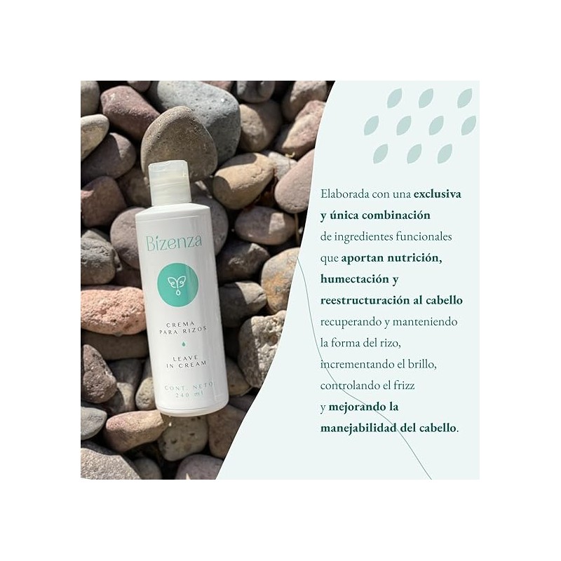 Bizenza - Crema para Rizos - Mascarilla para Cabello Rizado - Aporta Nutrición y Humectación - Recupera la Forma del Rizo Natural - Tratamiento que Evita el Frizz - 240 ml