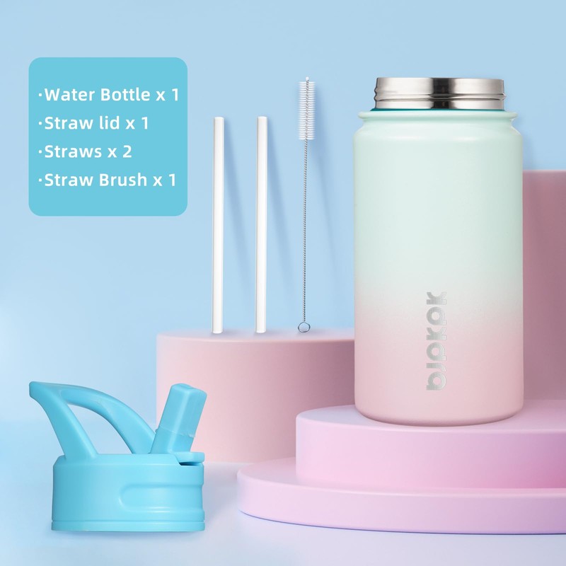 - Botella de agua con aislamiento al aspiradora: la botella de agua aislada BJPKPK Kids con tapa de popote es de doble pared y sellada al aspiradora, lo que ofrece un frío interminable para tus bebidas favoritas, manteniéndolas frías durante 24 horas y calientes al vapor durante 12 horas, para que puedas disfrutarlas a la temperatura perfecta durante más tiempo