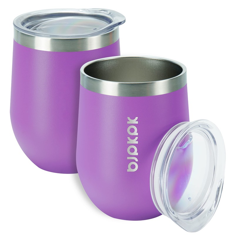 BJPKPK 2 pcs 12oz Insulated Wine Tumblers, 12oz Double Wall Vacuum Coffee Mugs with Lid, Unbreakable Stainless Steel Wine Glasses, Insulated Coffee Cups for Home & Outdoor, Purple