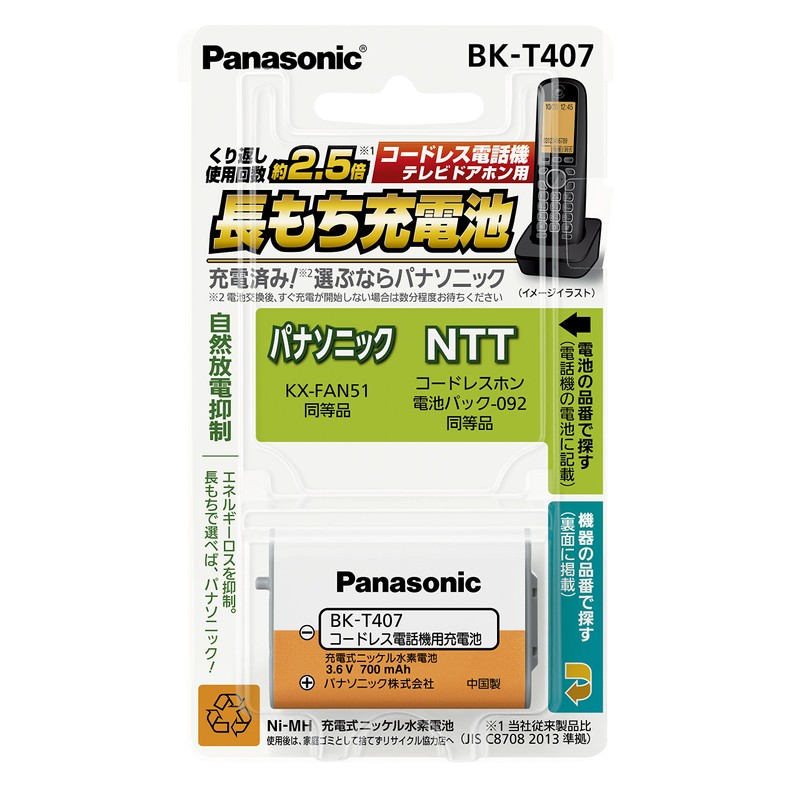 パナソニック 充電式ニッケル水素電池(コードレス電話) BK-T407