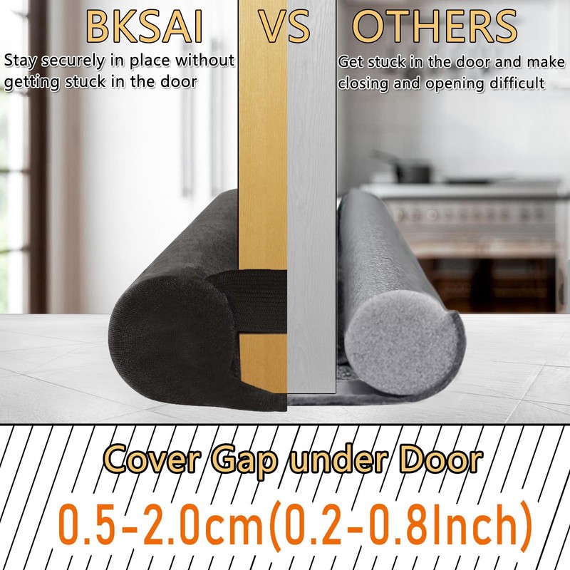 - Fits the door gap perfectly. Perfect as an under door cushions dust blocker noise reducer, wind stopper or energy saver. BKSAI door insulation suitble for shower door, garage, front door, windows ...