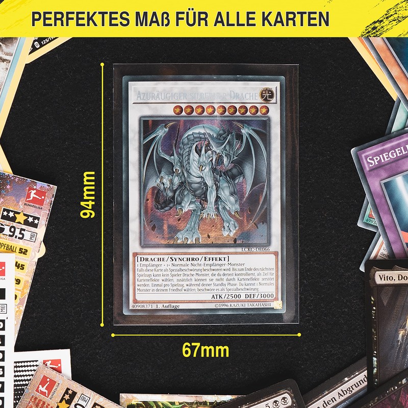 - Versatile: suitable for all standard sizes and trading cards up to 67 mm x 94 mm such as Magic The Gathering, YuGiOh, Fortnite, sports cards, poker cards or coins.