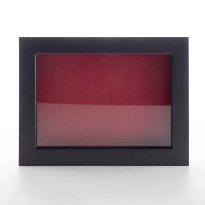 - Black Wood Shadow Box Frame Interior dimensions of 5x7 inches with 3/4" of usable depth. UV resistant, frame-grade acrylic protective front. Acid-free red backing board and interior walls. Hanging hardware included for vertical or horizontal display.