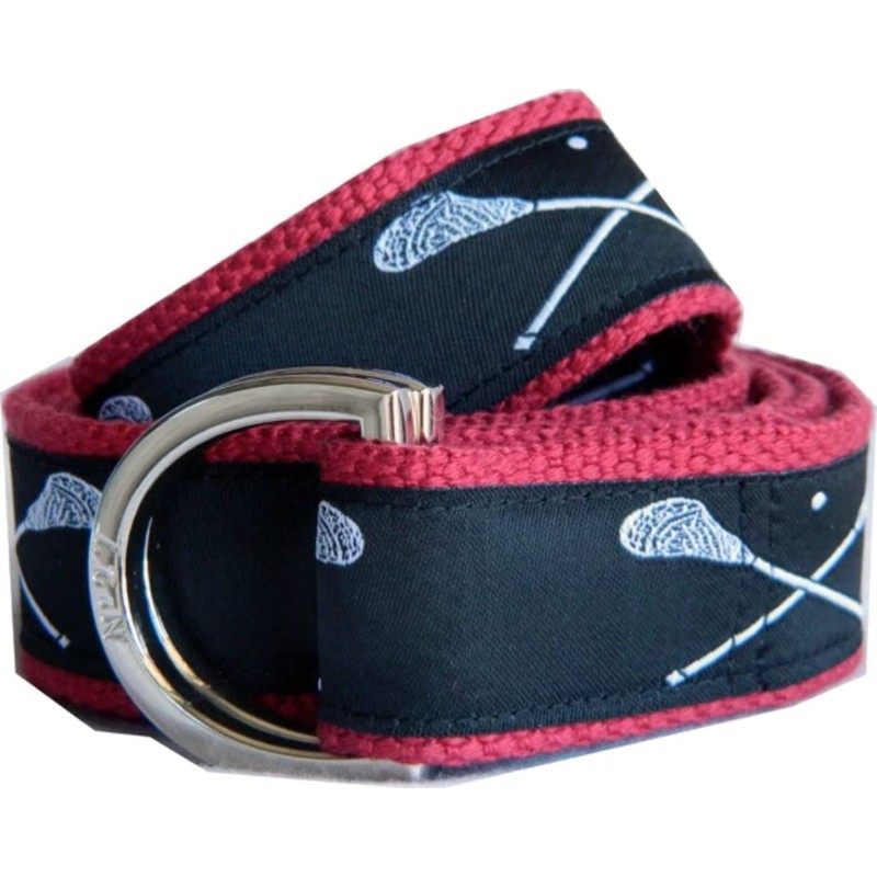 - Ribbon is a repeated pattern of crossed lacrosse sticks, sewn onto a 1.25" wide webbing