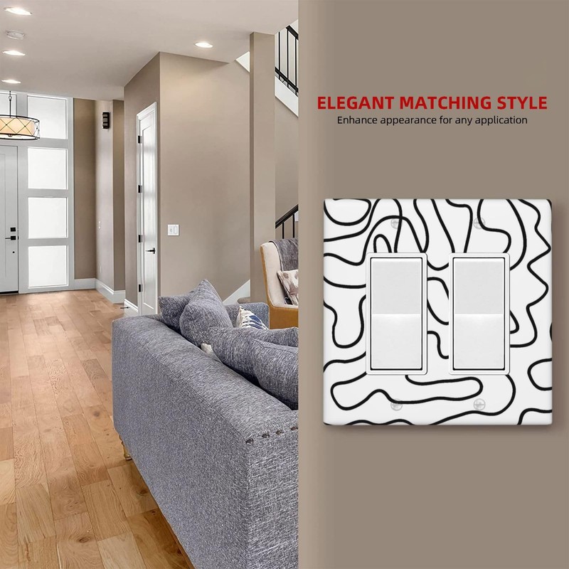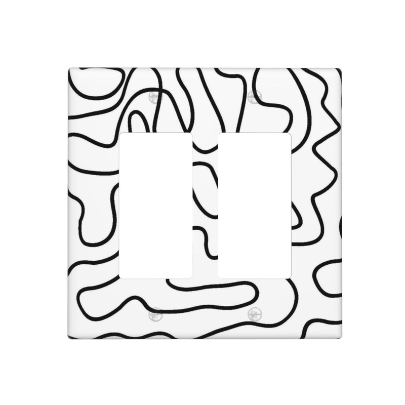 Black and White Rustic Abstract Black Lines Art 2 Gang Outlet Covers Double Rocker Light Switch Cover Decorative Gfci Wall Plate Electrical Switchplate Plug for Home Decor