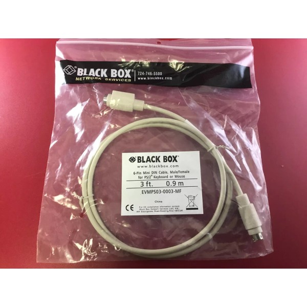 BLACK BOX EVMPS03-0003-MF 6-PIN MINI DIN CABLE, MALE/FEMALE FOR PS/2 KEYBOARD OR MOUSE