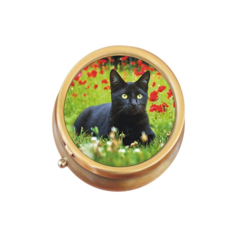 This quality 2-compartment pill box can help you stay organized fashionably! At about 2 inches wide it will fit in your purse or pocket easily. Our photo finish quality photo on top is sealed with a protective shiny finish for a great look.