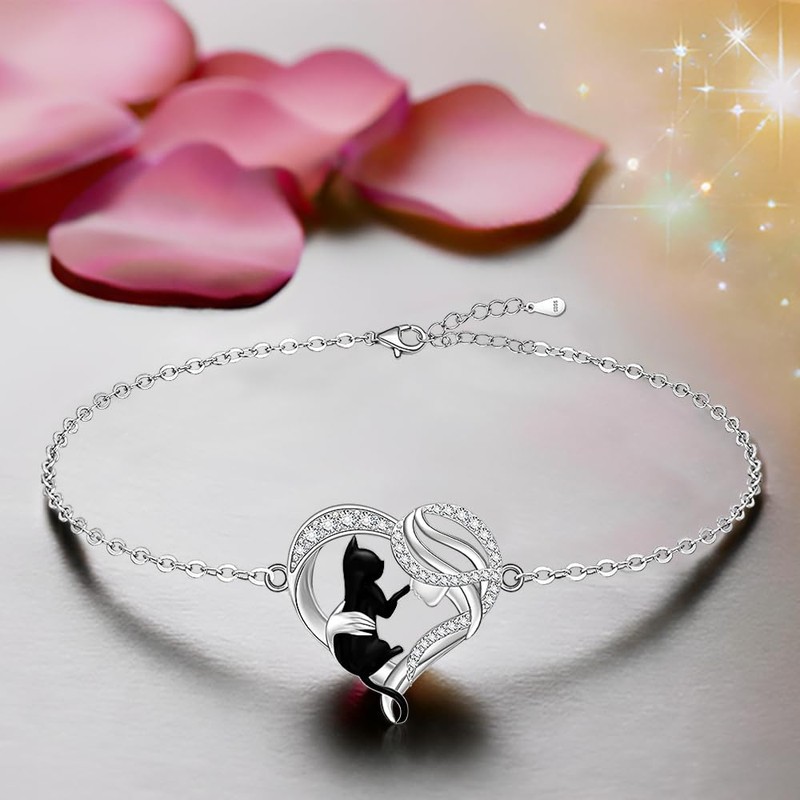 - Black Cat Anklet: The woman gently holds a black cat, and the overall shape cleverly forms a heart shape, which shows her deep affection for her pet, It is both modern and emotional, and is suitable for cat lovers to wear