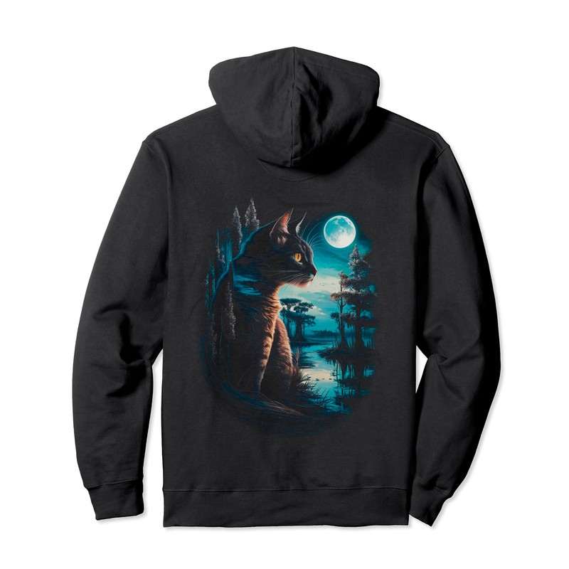 Black Cat Silhouette Moonlight T-Shirt - Moody Cat Art Pullover Hoodie