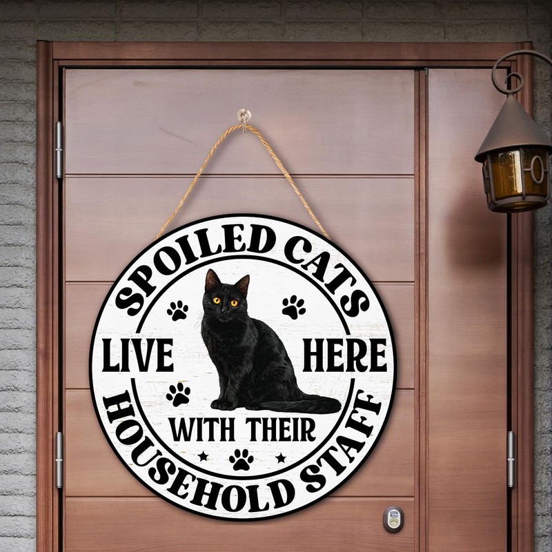 Black Cat Wood Hanging Sign for Front Door, Cat Gifts House Welcome Sign