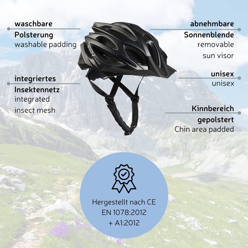 - Safe and reliable: each MTB bicycle helmet is manufactured according to the European safety standard CE:EN 1078:2012+A1:2012 - everything for your safety