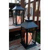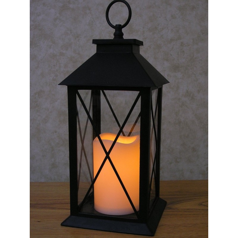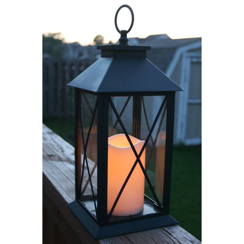 - FLAMELESS CANDLE WITH TIMER. Each black lantern has a LED unscented flameless candle included inside with 5 hour timer and on/off switch. Requires 3AAA batteries (NOT INCLUDED). Just turn the candle on at the time of the day you want it to start and it will go 5 hours from that time every night. No need to always be running around an turning on your lanterns at night. Have the peace of mind to walk out on your deck after dinner to the soft, warm glow of these beautiful lanterns.