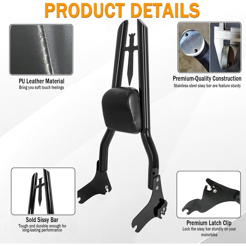 RESCUE YOUR MOTORCYCLE EXTERIOR w/ FJPACEMT: and detailing your passenger backrest. Our protective sissy bars are specially designed with premium-quality stainless steel that supports safety concerns. The solid connectors to your docking hardware and shock absorber areas so they stay in place when you lift up your moto, and the built in three pieces makes for easy removal and cleaning