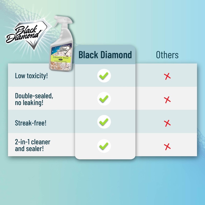 Granite Plus! 2 in 1 Cleaner and Sealer. It is a safe, PH neutral cleaner enhanced with our NEX-GEN granite sealer. Granite Plus! will keep your counters looking beautiful and streak free. Plus every time you clean, you fortify the performance of your granite sealer. We recommend that your granite be re-sealed with a granite sealer every three years along with using Granite Plus. Safe for use on Marble, Travertine, Limestone, Ceramic, Quartz, Corian and Silestone. Simply spray Granite Plus! onto the counter and wipe clean with dry cloth until dry. No rinsing necessary. Granite Plus! is a part of Black Diamond's STONEWORKS' line. This is our premium line of natural stone cleaners & sealers. They are designed to help you easily maintain and protect all of the beautiful stone and tile surfaces in your home or business. STONEWORKS cleaners and sealers are designed to offer you the perfect combination of unequaled product performance and value! Made in the USA