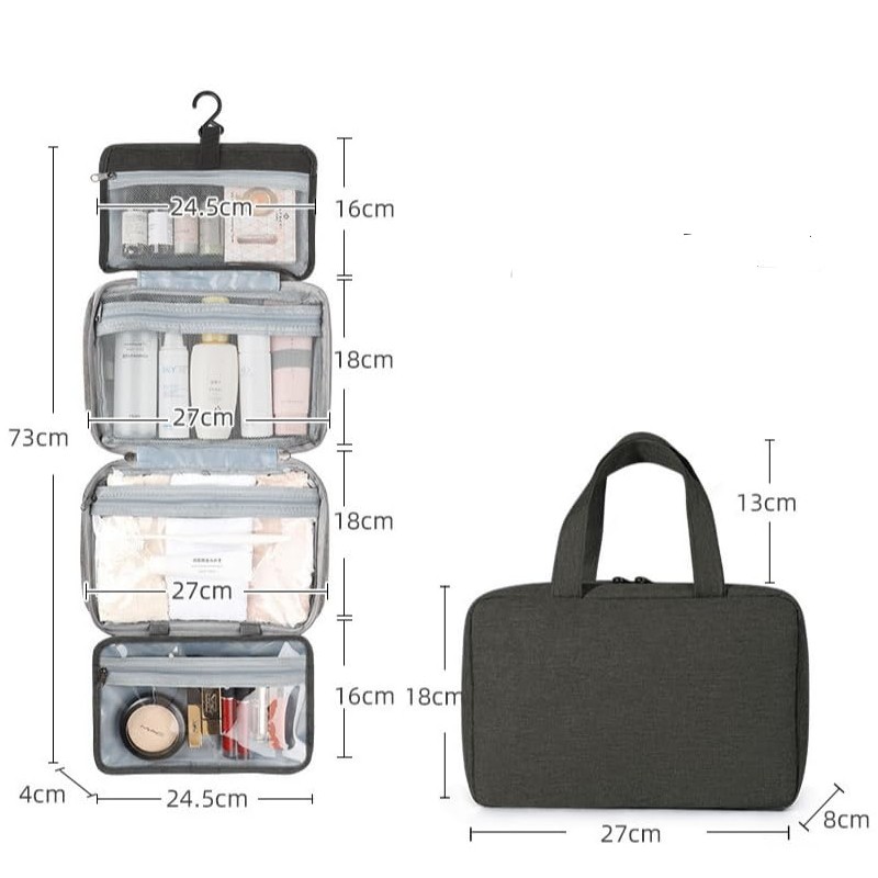 - Spacious & Organized: Multiple compartments for makeup, brushes, skincare, and accessories to keep everything in place. Durable & Water-Resistant: Made with high-quality, water-resistant fabric to protect your cosmetics from spills and moisture. Compact & Portable: Folds neatly for easy storage and portability—perfect for travel, home use, or daily carry. Easy to Clean: Smooth, wipeable interior lining for hassle-free maintenance and cleaning. Perfect Gift: A great gift idea for beauty enthusiasts, travelers, or anyone in need of organized storage.