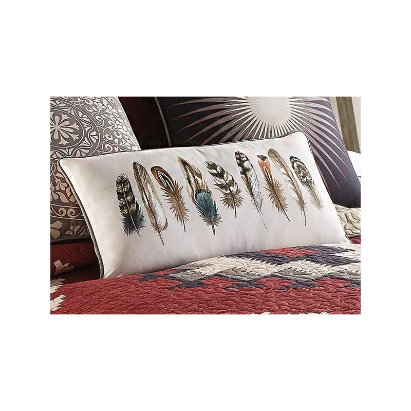 Exclusive Item - This brushed microfiber pillow with features a delicate southwest feather design. Machine wash. This western throw pillow measures 22"W x 11"L.