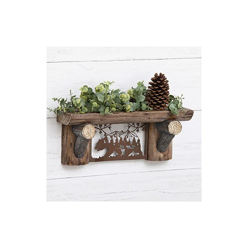 BLACK FOREST DECOR Mountain Bear Metal & Log Wall Shelf