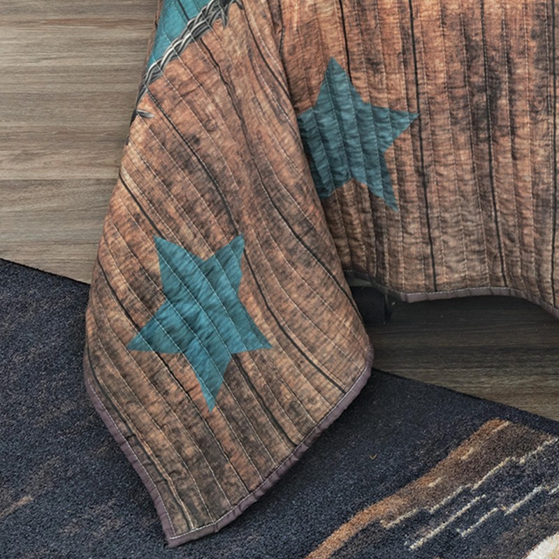- STRIKING WESTERN STYLE: Bold turquoise stars against a weathered wood plank background add rustic elegance to your bedroom.