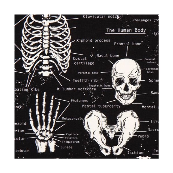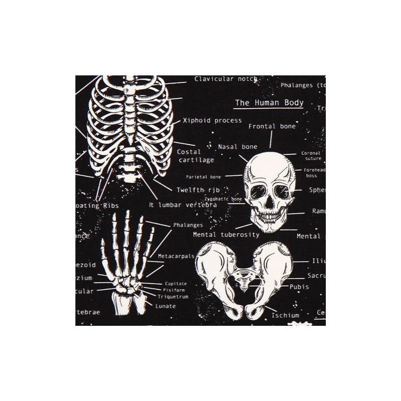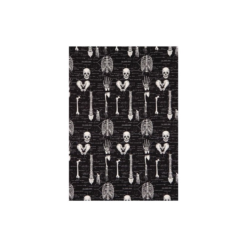Black Glow in The Dark Skull Skeleton Fabric (per 0.5 Yard Multiples)