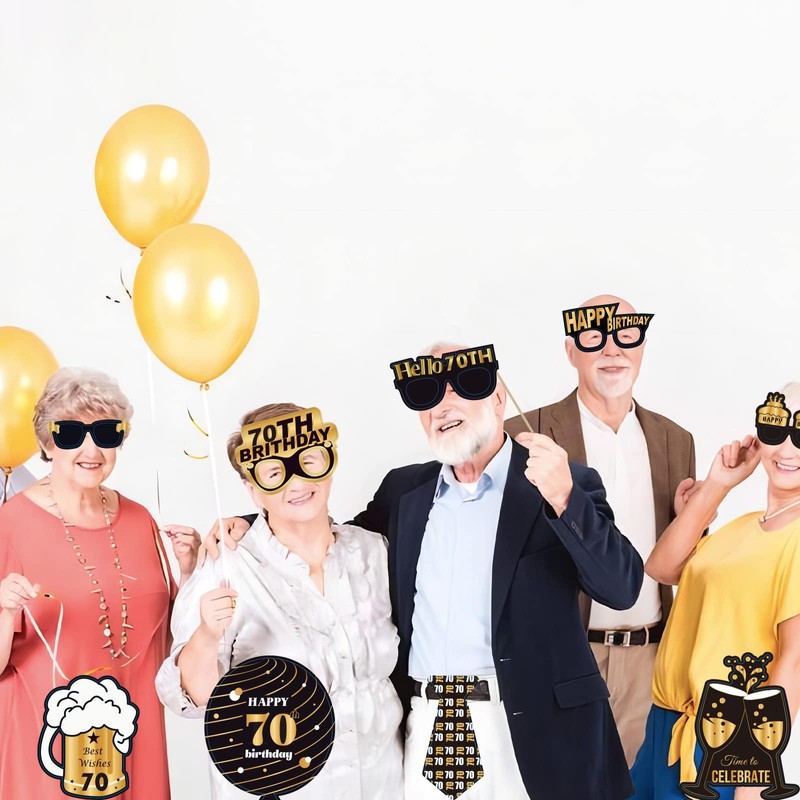 Black Gold 70th Brithday Party Decorations for Women Men,Giant Inflatable Selfie Frame 70th Birthday Photo Booth Frame with 32pcs 70th Birthday Photo Booth Props for Ladies Him Her 70th Birthday Gifts