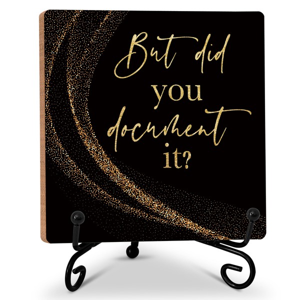 Black Gold Wood Sign for Office Table Shelf Desk Decor, But Did You Document It Wood Plaque with Stand, Funny Gifts for Friends Boss HR Coworker - e02