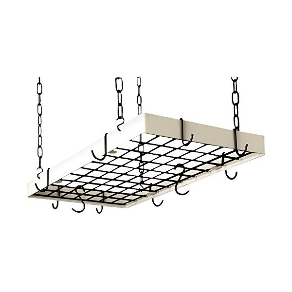 Black Gourmet Rectangle Kitchen Pot Rack with Brass Grid