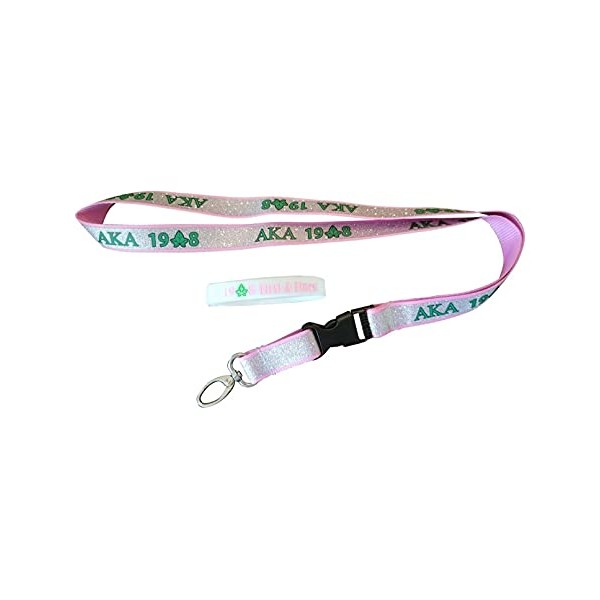 Black Greek Sorority AKA Glitter Lanyard Set (One Lanyard & One Bracelet)