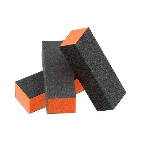 - This black grit orange sanding 3-Way nail buffer block is a lightweight yet durable choice for all your nail care needs.