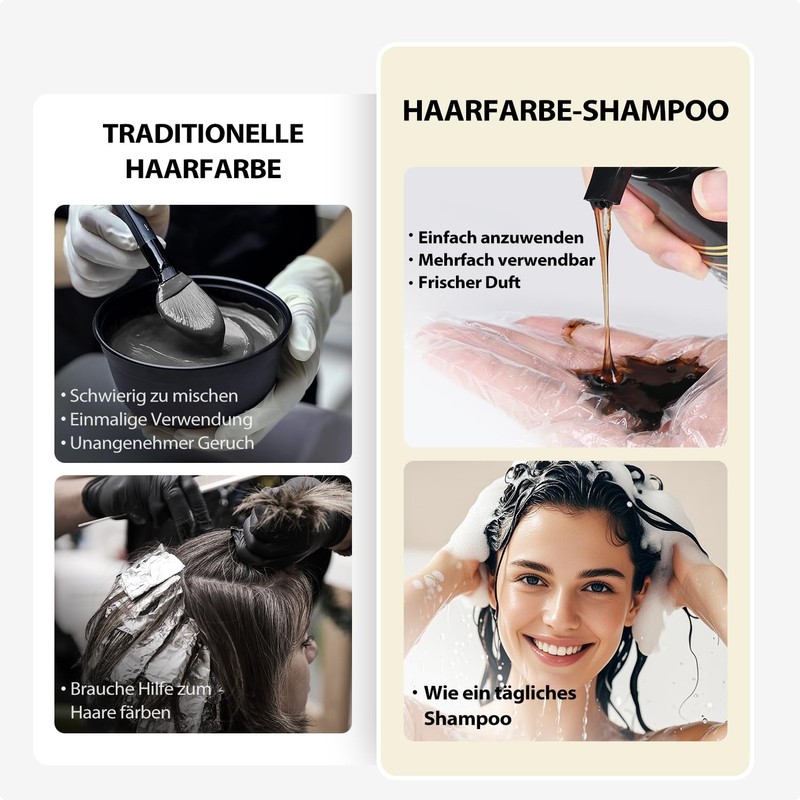 - [For All Hair Types] Whether straight, curly or coloured hair, our hair dye shampoo is suitable for both women and men. It ensures even colour coverage of each strand and gives you a harmonious colour effect, so you can express your unique style and personality