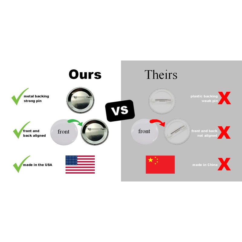 - Made in the USA – Each and every button is produced in-house, using high-quality paper and button parts. Support our country by buying American-made buttons.