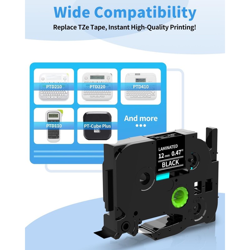 - Simple application with trace-free removal – With hassle-free peel-and-stick backing, tz tape 12mm 0.47 Laminated black labeling is fast and easy. And when you're ready to make updates, our labels remove cleanly without sticky mess
