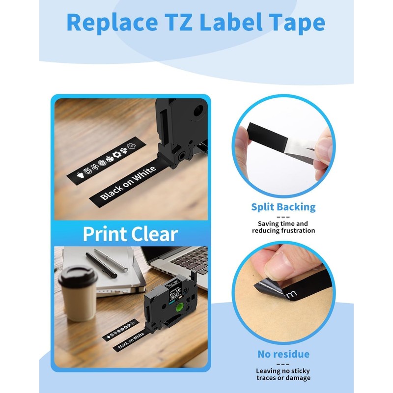 - Strong adhesion that lasts – Designed for durability, these replace for p touch label tape resist water/extreme temperature/oil/abrasion/fading and peeling, sticking reliably on various surfaces from kitchen containers to office binders, ensuring your labels last as long as you need them