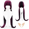Black Mix Pink Cosplay Wig with Fringe, Elf Ears and Free Wig Net - 80 cm Heat Resistant Synthetic Fibre Wig for Halloween, Theme Parties and Anime Fans