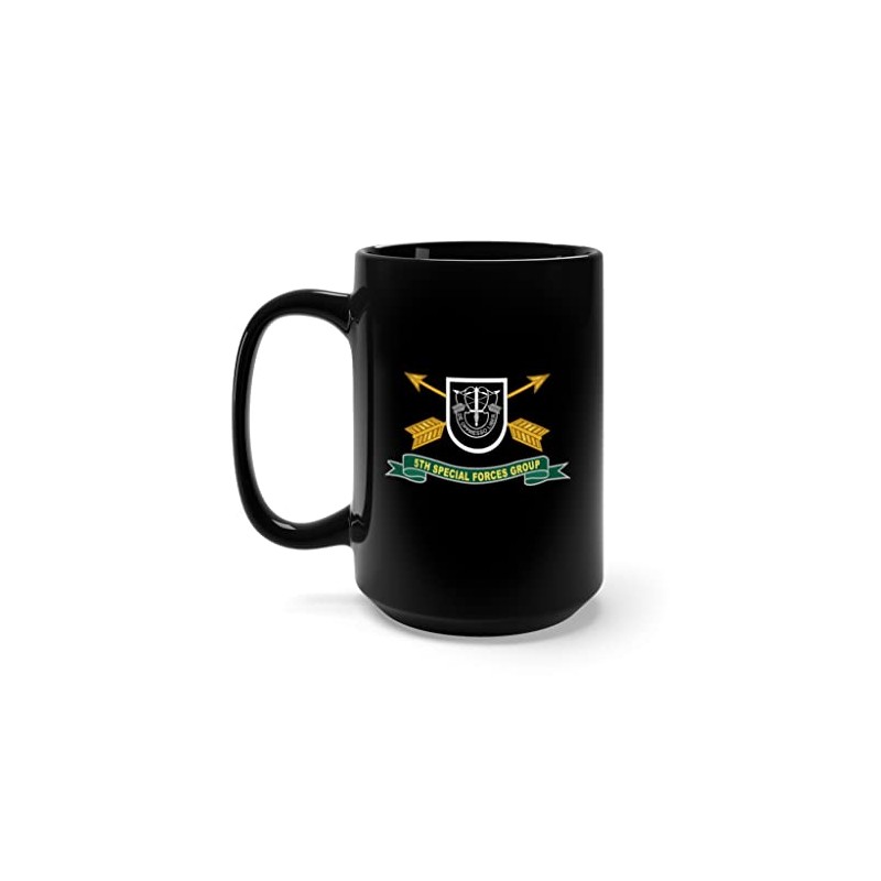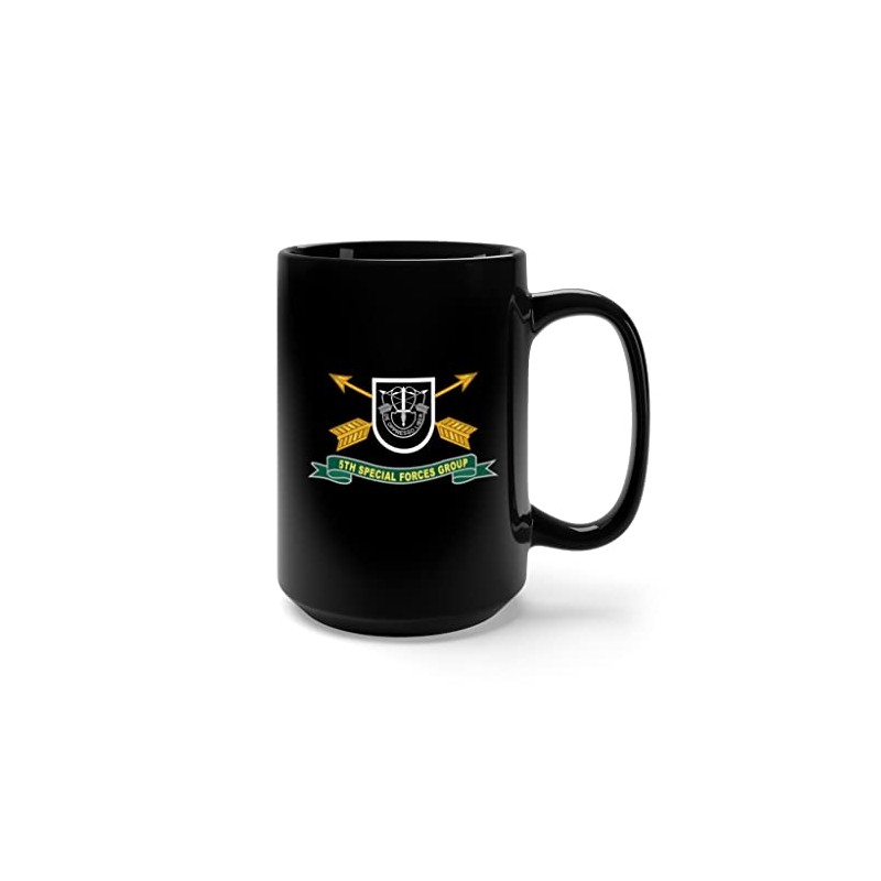 Black Mug 15oz - Army - 5th Special Forces Group - Flash w Br - Ribbon X 300