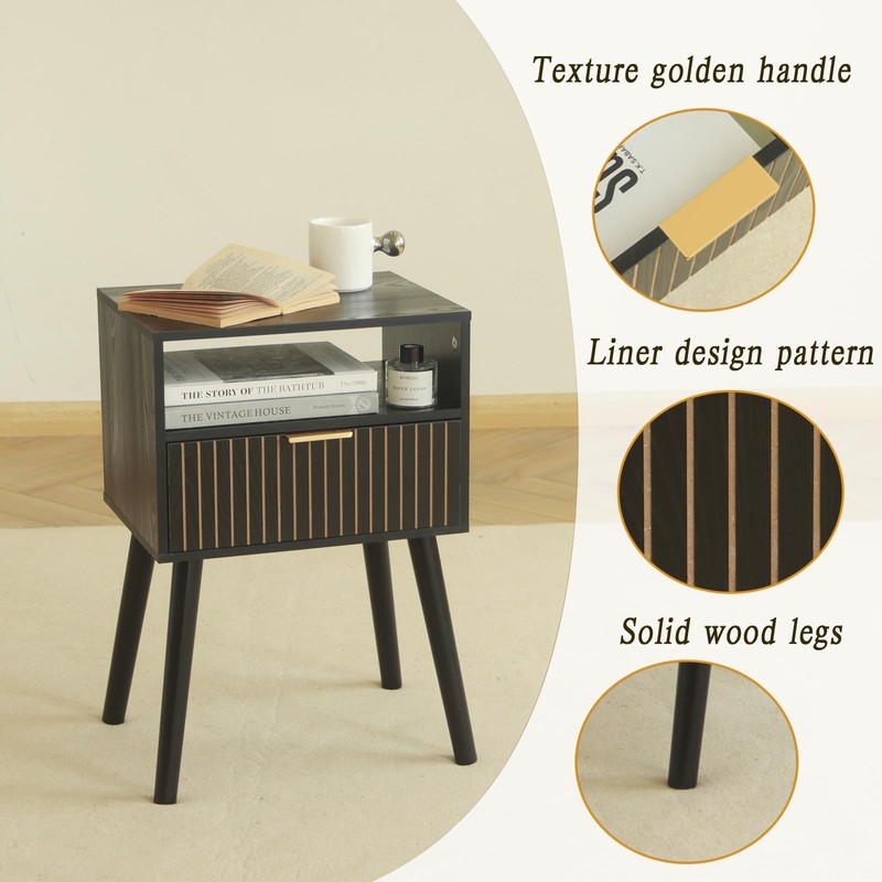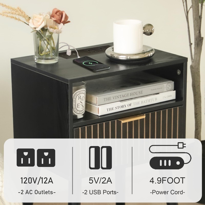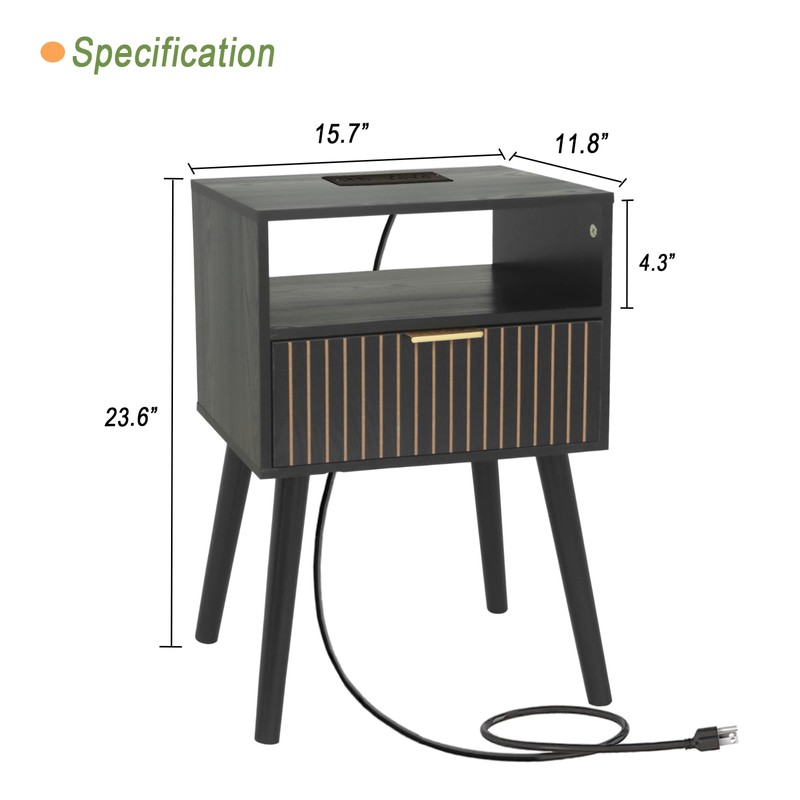- Modern Nightstand: The elegant square tabletop, walnut surface, and fluted design drawer constituted this charging nightstand. It is perfect to fit any home decor, making the room looks more stylish and snug.Ideal as a sofa table, corner table, nightstand, coffee table, bedside table, laptop desk, or lamp table for your living room, bedroom, hallway, or office