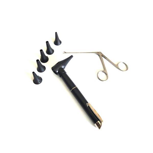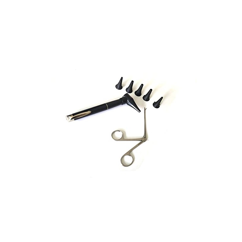Black Otoscope LED Diagnostic + 3.5" Alligator ENT Ear Nose Forceps