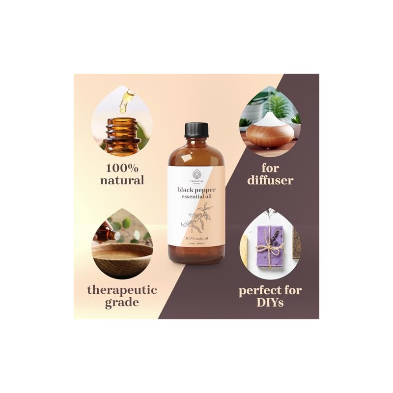 - 100% pure and undiluted, this steam-distilled oil captures the bold essence of black pepper berries without any synthetic ingredients.