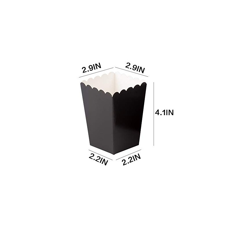 - Mini Popcorn Boxes.Size:Open top- 2.9 x 2.9 inch; bottom size- 2.2 x 2.2 inch; Height-4.1 inch.