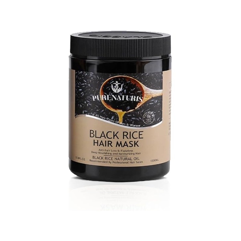Black Rice Hair Mask Intensive Repair Treatment for Men and Women, Anti Hair Loss and Regrowth, Deep Moisturizing and Shine Restoration, Ideal for Damaged Hair, 33.8 fl oz