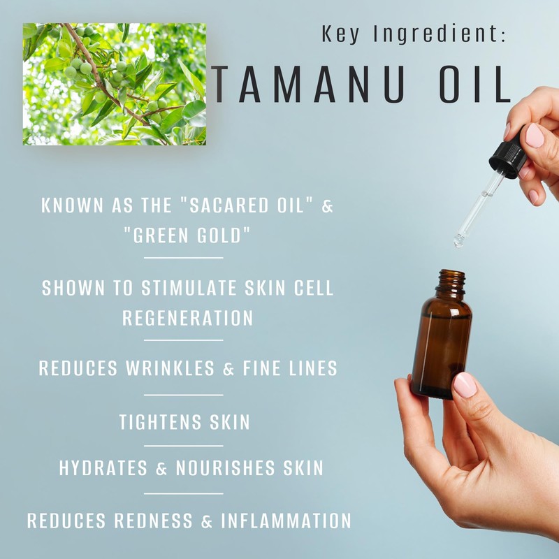 - HEALTH BENEFITS: Contains key ingredients such as jojoba butter, tamanu oil, and green clay to tighten and cleanse your skin. Tamanu oil, also known as 'green gold' and 'sacred oil', has been shown to increase collagen regeneration, resulting in tighter skin, fewer wrinkles, and reduced fine lines. The added facial cleanser aids in removing impurities and dead skin cells from the skin.
