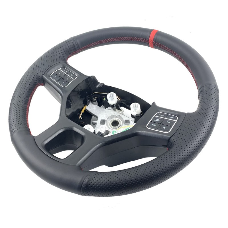 Black Side Perforated Leather Red Marker Steering Wheel Protector Cover Hand-Stitch on Wrap Fit for Dodge Ram Heavy Duty 1500/2500/3500/4500/5500 2013-2019 (Red Mark Strip)