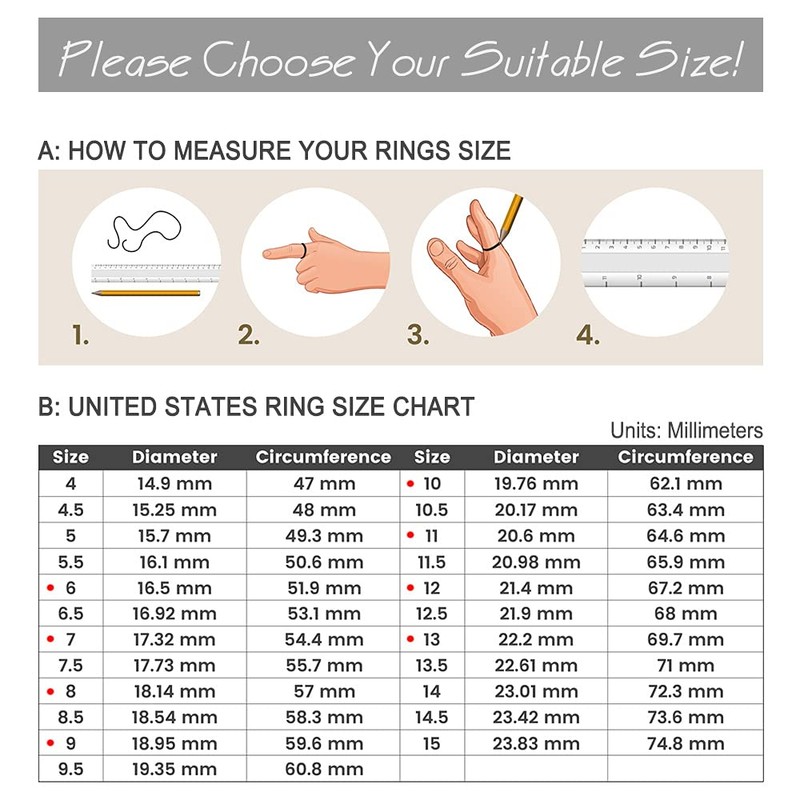 - Using Tips: Please Measure your finger size before purchase, for stainless steel ring can not be resized